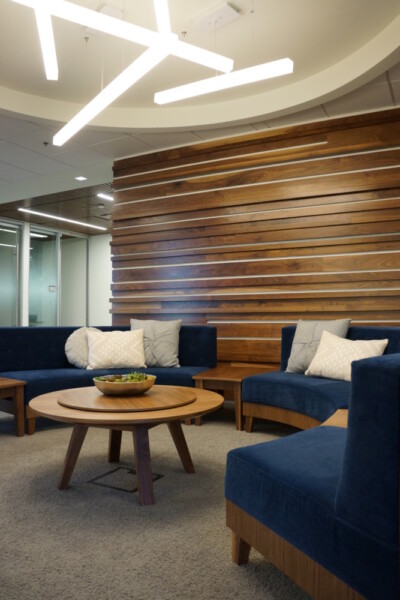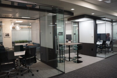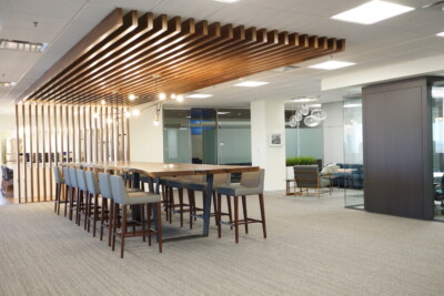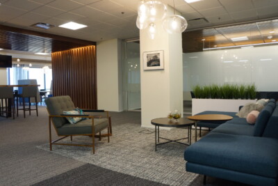 This project entailed the renovation and finish out of 24,000 s.f. in a corporate office building. The renovation included a full redesign of the floor as well as the design of all modular and ancillary lounge and collaborative furnishings. The client for this project requested 25 offices for the legal staff as well as 35 work stations for the support staff. Our team created a minimalistic office design in order to accommodate the office count. We also incorporated multiple conference and teaming rooms for breakout sessions, preparatory meetings and discovery. In addition to the many types of meeting spaces,our team included a casual work café that can double for town hall addresses by leadership.